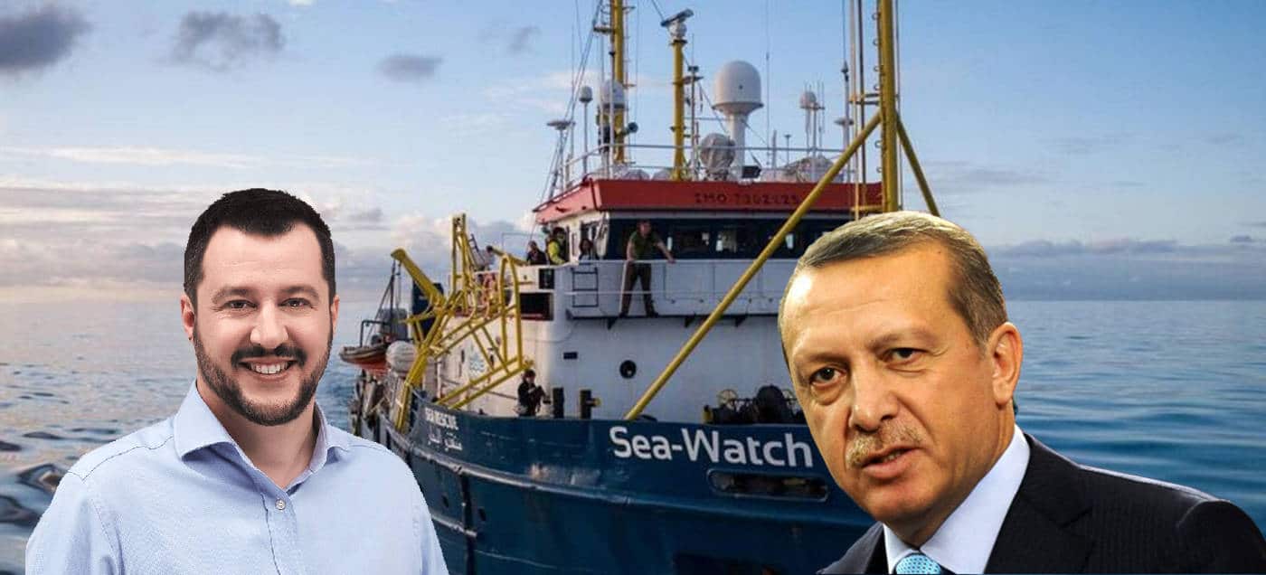 Questo è il motivo per cui Daily Sabah, cioè la stampa turca, difendono contemporaneamente la capitana Carola e il capitano Salvini. È un equilibrismo che punta a promuovere un tipo di politica dell’accoglienza che è l’esatto contrario di quella che vuole il Ministro degli Interni italiano. Davvero una genialata.