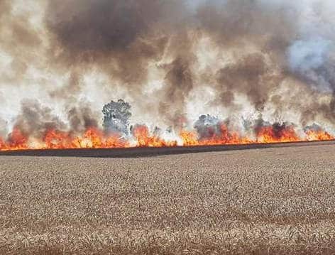 Campi di grano in fiamme dopo il lancio di palloni incendiari