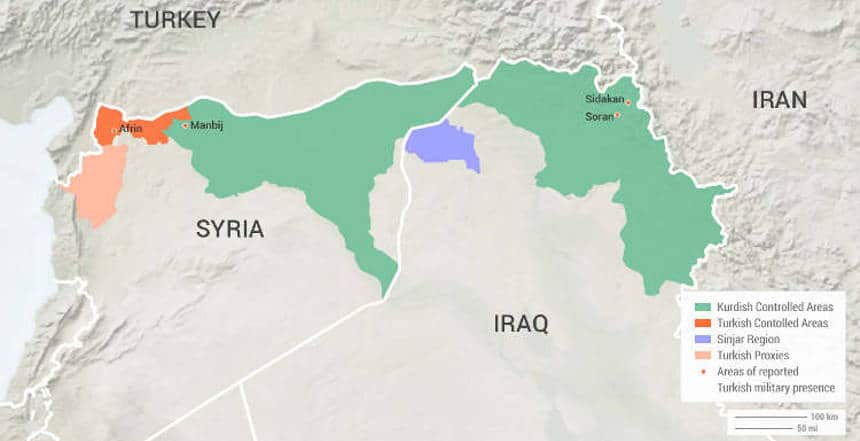 Ma Erdogan non si è limitato a minacciare solo il Kurdistan siriano. Nello stesso comunicato si avvisa il governo iracheno che «se non si libererà dei “terroristi curdi” l’esercito turco si sentirà libero di agire anche nel nord Iraq».