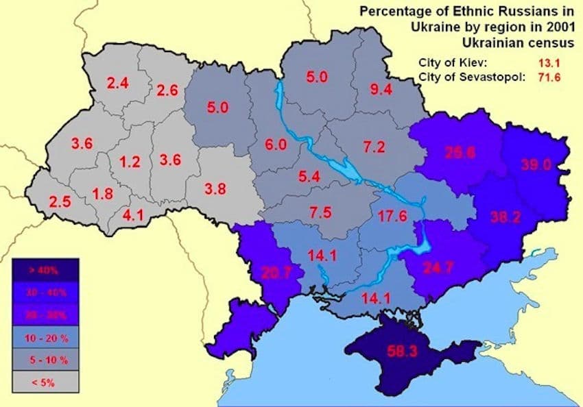 Sapevate che la popolazione di etnia o di lingua russa nelle regioni del Donbass è una minoranza che va dal 14 al 17 percento? Sapevate che anche nelle altre province (oblast) sono addirittura di meno fatte salve quelle orientali?